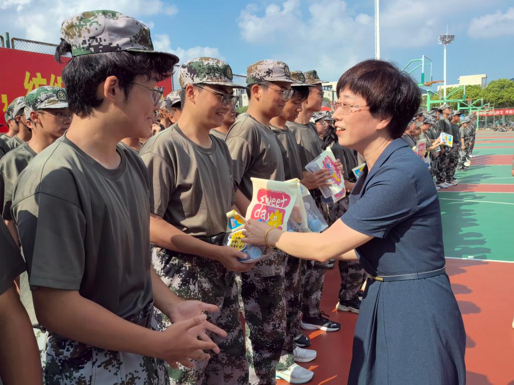 纺织学子们在教官的指挥下,以严整的队列向亲临慰问的领导们展现了阶段性训练成果。领导给军训学生发放慰问品,同学们倍感鼓舞,纷纷表示将以更加饱满的热情和坚毅不拔的态度投入到接下来的每一次挑战中,为开学第一课交出一份完美答卷。