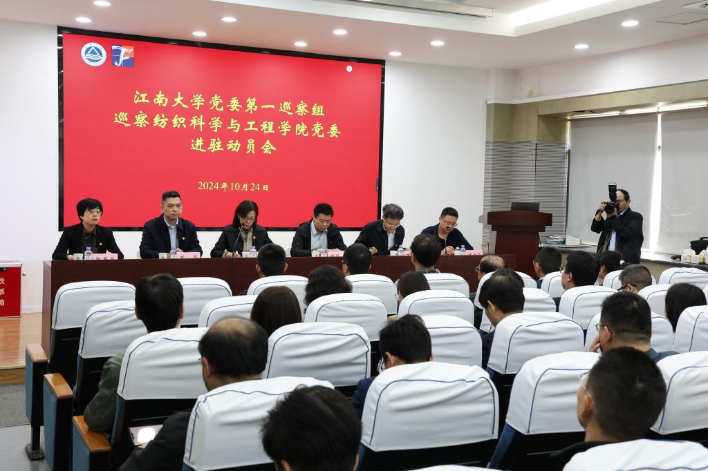 10月24日上午,校党委第一巡察组巡察bv伟德国际1946党委进驻工作动员会在纺织A103会议室召开。第一巡察组组长、校党委常委、副校长张影陆,巡察组副组长、党委伟德国际部部长、人民武装部部长、伟德国际处处长周伟涛,巡察组副组长、物联网工程学院党委书记张华,巡察工作领导小组成员、党委巡察工作办公室主任丁文勤,巡察组全体成员和bv伟德国际1946、纤维工程与装备技术学院领导班子成员,学院师生代表50余人参加会议。会议由bv伟德国际1946院长付少海主持。