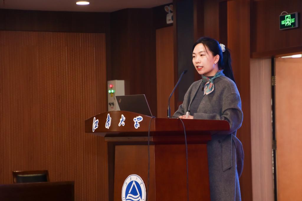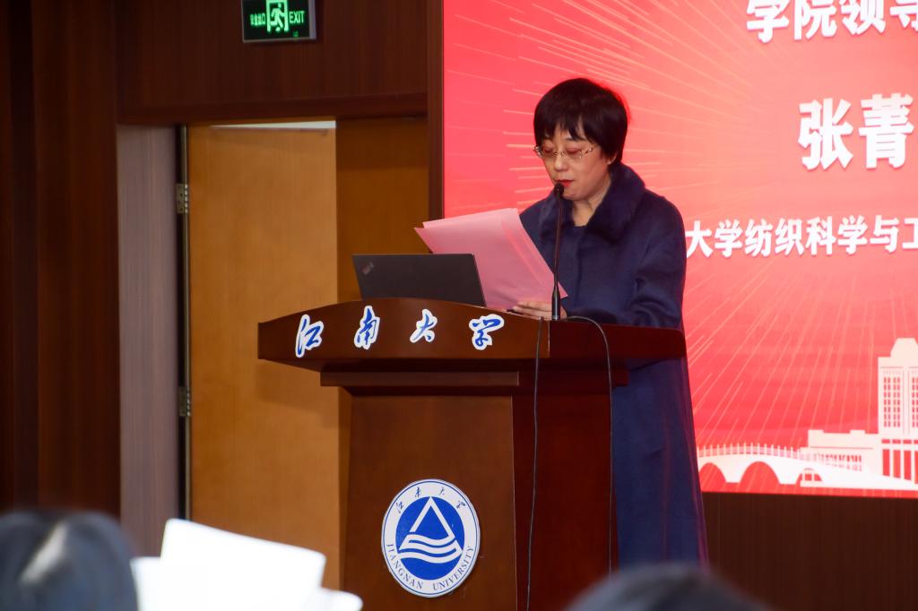颁奖仪式后,“吉润杯”大学生创新创业大赛获奖团队进行了精彩的项目分享,他们以严谨的逻辑、生动的案例展示了项目的亮点与发展的潜力。紧接着,苏静作题为《纺织梦想,竞赛启航—探索“纺织+”学科新未来》的主题分享,她强调了守正创新、革新突破思维重要性,还与大家探讨了培养创新思维的方法,鼓励同学们要锐意创新,勇于突破自我。