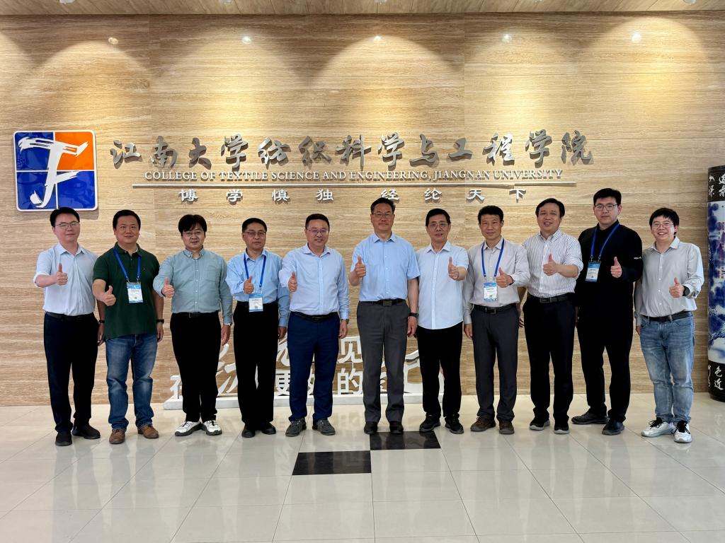报告结束后,王中林莅临纺织科学院工程学院进行座谈交流。付少海从学科发展历史、师资队伍、科研团队等方面介绍了学院现状,分享了学院在搭建跨学科平台、推动成果产业化方面的实践经验,为未来深化合作提供了重要参考。随后参观了针织技术教育部工程研究中心,蒋高明介绍了智能纺织材料的最新研发进展,充分展现智能制造对传统纺织产业的革新力量。