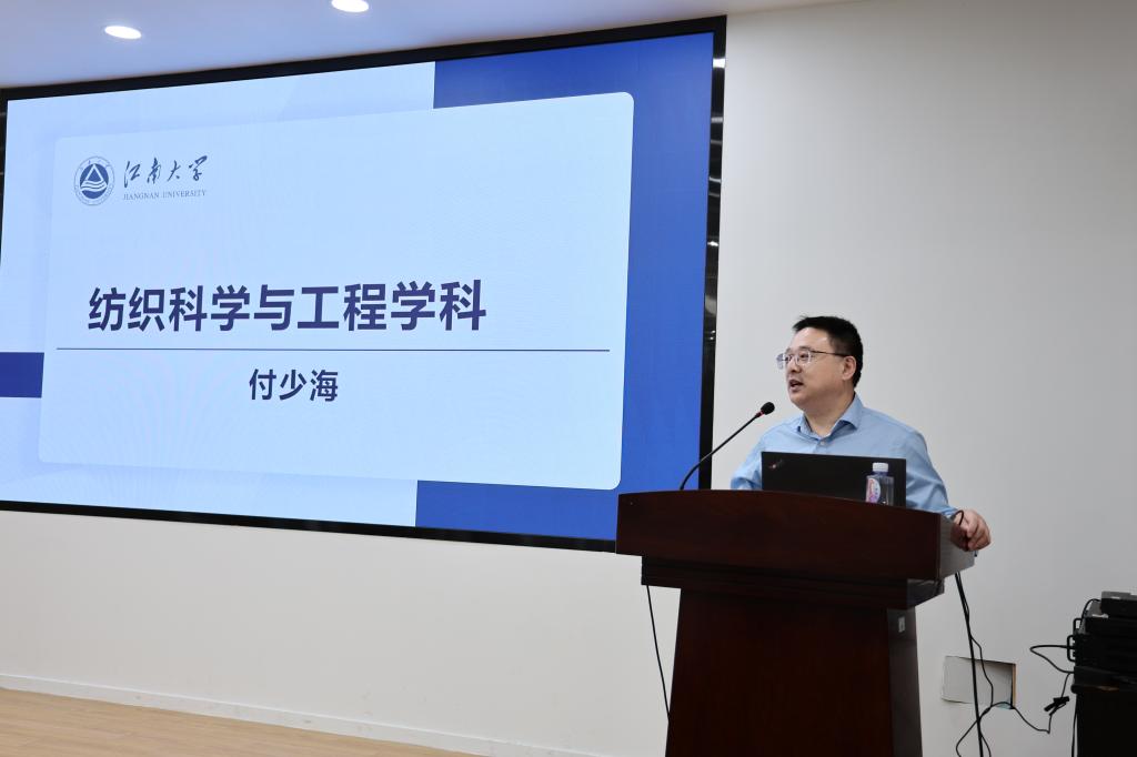 朱飞代表学校致辞,他向莅临论坛的各位学者和嘉宾表示热烈的欢迎和感谢。希望各位专家学者相聚于此,以学术交流赋能纺织学科创新发展,推进先进纺织技术交叉融合。希望青年教师和学生以此次论坛为契机,加强先进纺织材料与技术科研探索,进一步提高我校纺织学科科研实力。