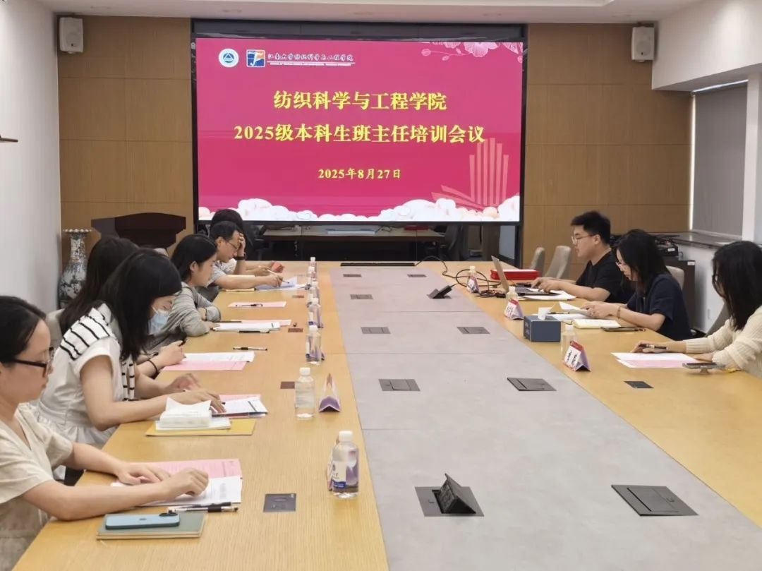 为扎实做好新生入学教育与班级管理工作,8月27日,bv伟德国际1946召开2025级本科生班主任培训会议。学院党委副书记、副院长杨莉勤,优秀班主任代表、纺织(创新班)2401班班主任李蔚,2025级本科生辅导员孙洲龙,全体2025级本科生班主任及副班主任参加会议。