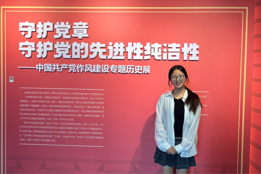 陈芷萱同学去到了浙江省宁波市北仑区的张人亚党章学堂,在讲解员的带领下,步入展厅。看着那些见证了岁月变迁的展品,心中对党的历史有了更真切的感知。张人亚的精神如同一盏明灯,照亮她前行的道路。在今后的日子里,她将以他为榜样,坚定理想信念,在工作和生活中践行初心使命,传承红色基因,让信仰的力量不断延续。
