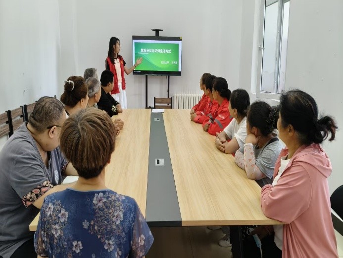 贾静筠同学赴山西临汾市安泽县书香名邸社区,以垃圾分类宣传为核,创新制作动画视频、设计主题海报并嵌入二维码,深入社区分发呼吁,让环保知识鲜活起来。