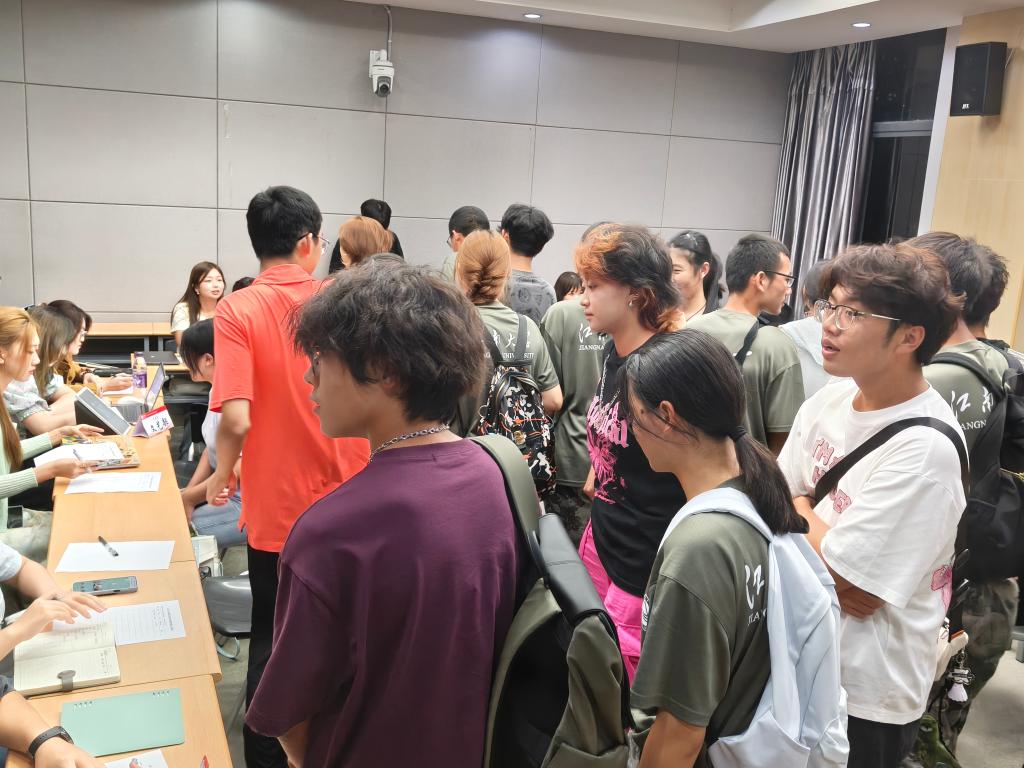 9月13日晚,学院学生组织招新宣讲会于一教1B103教室举行。主持人王生域为学生组织的整体架构与主要职能作了简要介绍。随后,各部门代表依次上台,围绕部门职能、团队氛围、成长路径及招新要求等内容展开宣讲,向2025级新生全面展示各部门特色与发展机遇。宣讲结束后,各部门分别组织初试环节。现场新生踊跃参与、积极互动,在沟通中增进彼此了解,在选择中明晰成长方向。