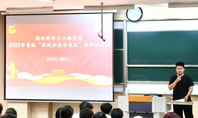 10月13日晚,bv伟德国际1946于第一教学楼1B103举办2025年暑假“实践归来话成长”信仰公开课。2025级本科生辅导员孙洲龙、2025年暑假社会实践各院级重点团队代表及2025级全体本科生参与此次活动,会议由学院学生会团委通讯社胡欣悦主持。