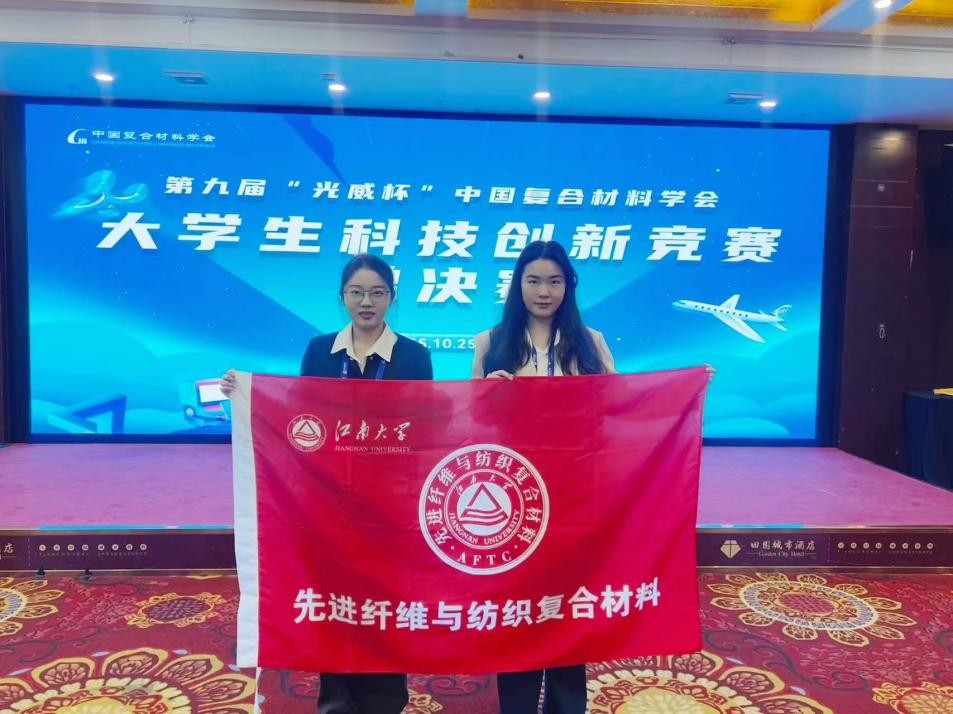2025年10月24-25日,第九届“光威杯”中国复合材料学会大学生科技创新竞赛全国总决赛在成都落幕。我院先进纤维与纺织复合材料团队组建的研究生队伍(郑建华、王亚娟、杨莹雪、高年、程振宇),在张典堂老师指导下,自主完成了《巧编问海-轻质抗分层的三维编织复合材料深海耐压柱壳》项目,在决赛中表现卓越,最终荣获全国二等奖。