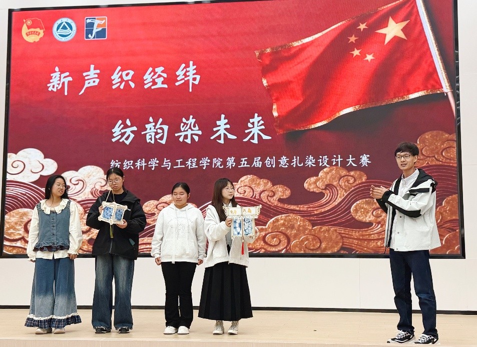 方寸布帛藏匠心,一缕染韵承文脉。扎染作为传统非遗技艺,在本次大赛中被赋予了Z世代的创新表达。本次大赛的成功举办,不仅加深了学生对扎染艺术的理解,更推动青年在实践中体悟非遗价值、厚植文化自信,激励纺织学子成为传统技艺的传承者、文化创新的实践者。