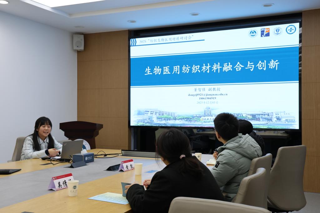 •董智佳副教授以“生物医用纺织材料融合与创新”为题,阐述了目前已实现的跨领域融合、科技创新与临床转化产品。