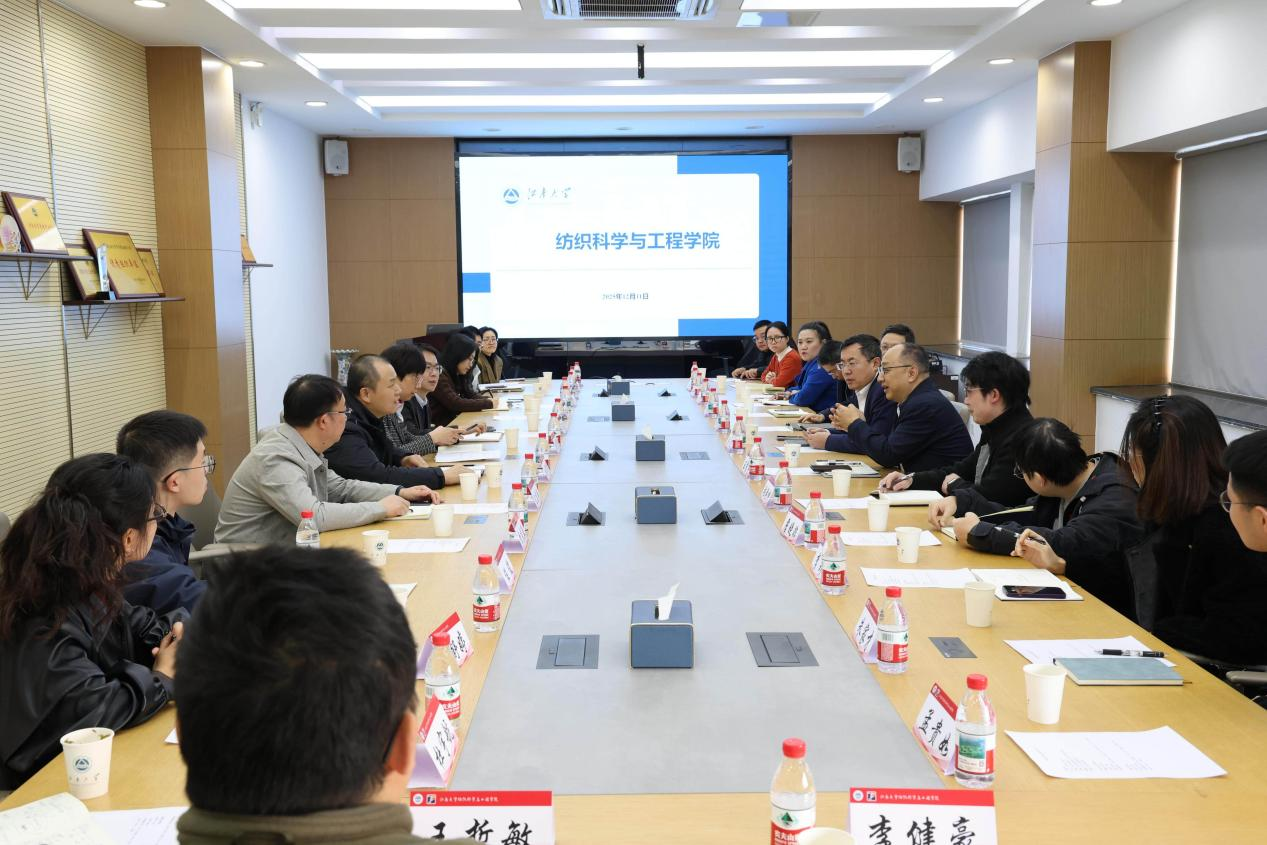 12月11日,伟德bv1946校党委常委、副校长刘龙率科技发展部部长王震宇、科学技术研究院院长东为富、产业技术研究院副院长缪恒锋等一行,赴bv伟德国际1946开展纺织与机械两个学院联合专题调研。本次调研围绕学校如何与学院协同推进科研项目申报、优化学科发展布局等议题展开深入交流,旨在凝聚共识、形成合力,共同推动学校科研创新体系建设。
