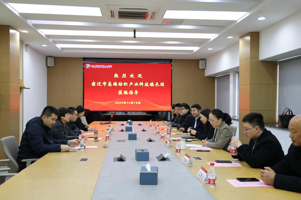 12月18日下午,宿迁市高端纺织产业科技镇长团团长陈世林,宿迁市沭阳县科技局局长邱燕,沭阳经开区经济发展局局长仲勇率相关部门负责人及企业代表到bv伟德国际1946调研交流。bv伟德国际1946党委书记张菁燕,科技镇长团挂职教师司鹏翔及相关团队代表等接待来访一行。