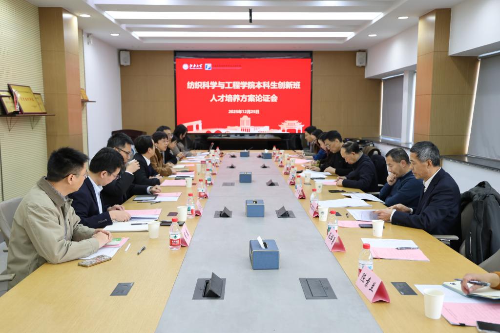 12月25日下午,bv伟德国际1946在纺织楼A306会议室召开2026级创新班人才培养方案论证会。论证专家团队由中国工程院院士、东华大学孙以泽教授领衔,我校人工智能与计算机学院(软件学院)院长方伟,企业代表、浙江凌迪数字科技有限公司教育事业部总经理董灵丽,无锡一棉纺织集团有限公司党委副书记糜娜,校友代表、科大讯飞股份有限公司江苏商务总监孔祥勇,江苏格罗瑞节能科技有限公司董事长葛陈鹏,远纺工业(无锡)有限公司高级工程师陈素兰,学院教师代表蒋高明、魏取福教授,及本科生代表共同组成。校党委常委、副校长李兆丰,本科生院副院长、教务处处长黄锋林,学院党委书记张菁燕、院长马丕波、副院长张丽平、纺织工程系主任周建、副系主任王清清等校方代表莅临参会,各方齐聚一堂共同为创新班人才培养方案精准把脉、凝聚共识。会议由学院党委书记张菁燕主持。
