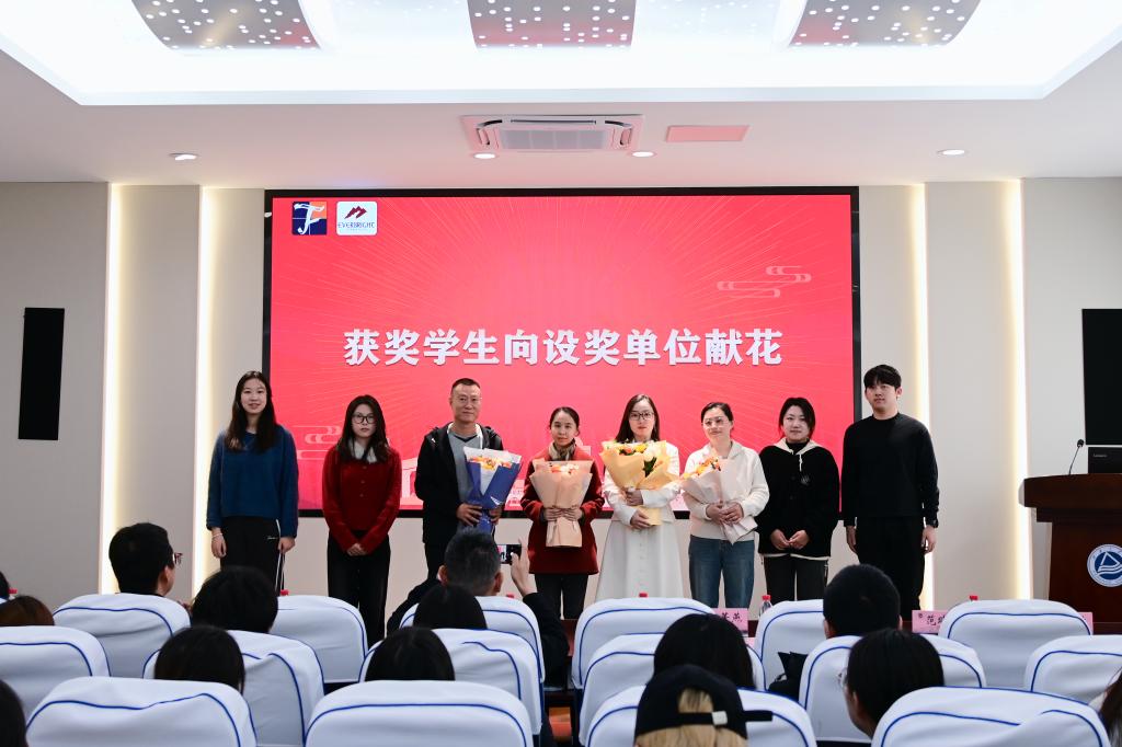 会上,黄锋林宣读表彰决定。与会嘉宾共同为获奖同学和团队颁发证书。2025年新锐奖获得者徐凌飞作为获奖学生代表发言,他首先感谢吉润国际的爱心捐赠,他表示,“吉润奖助学金”对他而言,是一份厚重的认可,更是一股持续前行的精神动力。他将始终怀揣感恩之心,脚踏实地、勇于探索,努力在专业领域有所建树。获奖学生代表向设奖单位嘉宾赠送了鲜花,表达对吉润国际的感激之情。