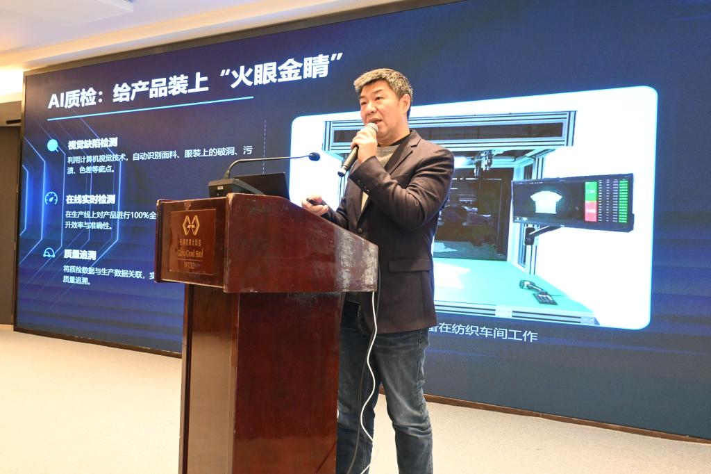 潘如如主持了学术报告环节。东华大学钟跃崎教授作了题为《人工智能在“纺织+时尚”中的协同赋能机制及实践路径》的报告,深入剖析了AI技术为产业融合带来的新机遇;江苏格罗瑞节能科技有限公司张永焱高工作了《纺织工业软件发展的必由之路:从数字化到智能化》的报告,系统阐述了软件自主化与智能化升级的战略方向;中原工学院杨红英教授则以《纺织色彩的数字化与软件化——色准·高效·协同》为题,分享了色彩领域技术变革的前沿实践。