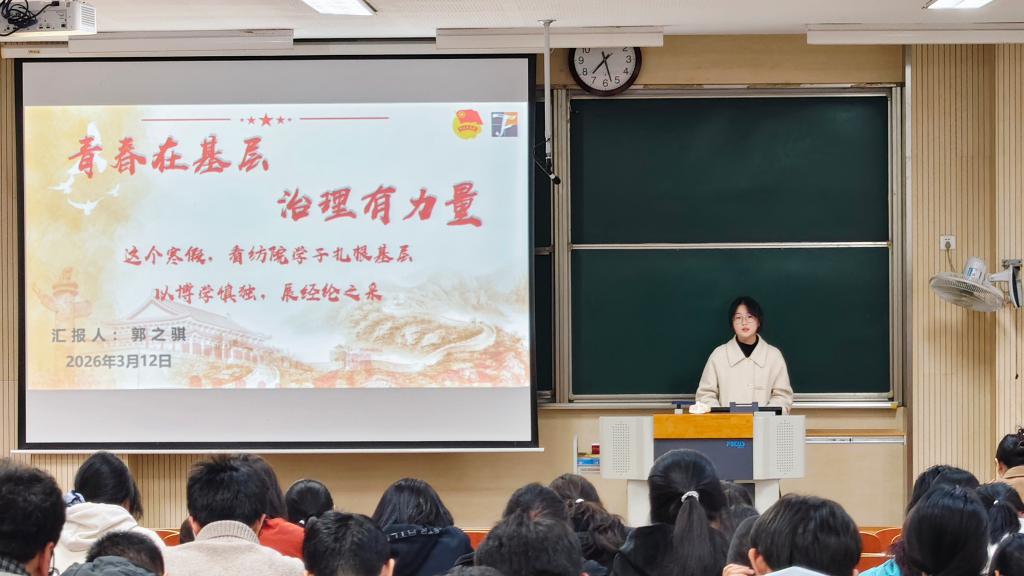 3月12日晚,bv伟德国际1946于第一教学楼1B103举办2026年寒假“实践归来话成长”信仰公开课。bv伟德国际1946学工办主任兼分团委书记任学敏、2025级本科生辅导员孙洲龙、2026年寒假社会实践各院级重点团队代表及2025级全体本科生参与此次活动,会议由学院学生会团委通讯社胡婧文淇主持。