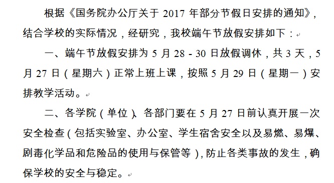 关于2017年端午节放假的通知