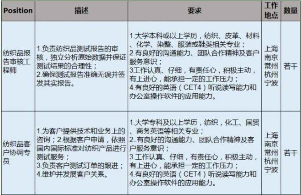 如果你也同样渴望得到国际化的工作氛围,广阔的发展空间,高水准的专业化培训,赶快加入我们的团队吧!请简历请投递至hr.shanghai@sgs.com。