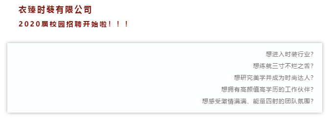 纺服学院【2020】41号 衣臻时尚有限公司2020校园招聘