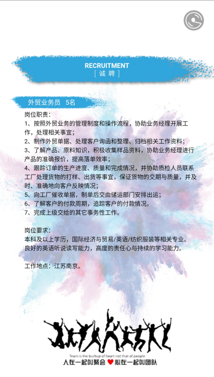 纺服学院【2020】44号 汇鸿中嘉2020校园招聘