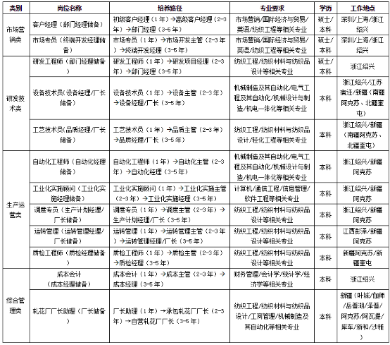 华孚时尚股份有限公司始创于1993年,是中国A股首家色纺行业上市公司,全球色纺产业领导品牌、全球最大的新型纱线供应商和制造商之一。 公司2018年实现营业总收入143.1亿,实现归属于母公司所有者的净利润7.5亿。  公司主营中高档色纺纱线,配套提供半精纺、涡流纺、气流纺色纺纱线和高档新型的坯纱线、染色纱线,同时提供流行趋势、原料与产品认证、吊牌、技术咨询等增值服务。主导产品远销欧美、日韩、港澳、东南亚等几十个国家和地区,是众多国内外名牌服饰的首选纱线。公司拥有189万锭的产能,分布浙江、长江、黄淮、新疆和越南五大生产板块。公司以“色彩引领者”、“环保先行者”、“技术创新者”为己任,引领色纺行业发展。  面对产业互联网与柔性供应链发展的新机遇,公司重新定位为全球纺织服装产业时尚运营商,坚持主业不放松、共享产业不停步,沿着带路战略、智化战略、网链战略,朝着千亿目标奋勇向前。  华孚视人才为第一资本与核心竞争力的源泉,致力于创造员工与企业共赢的平台,为员工提供富有竞争力的薪酬及激励机制,充分保障每一位优秀人才在华孚的价值实现。诚邀各位精英加盟华孚,共创“全球纺织服装产业时尚运营商”的宏伟事业!