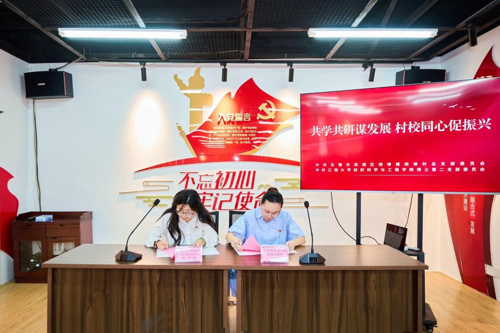 活动中,bv伟德国际1946博士第二党支部与胡埭村党总支进行结对共建,双方代表共同签署《党建共建协议书》,围绕组织共建、人才共育、发展共促达成合作机制。随后,校友黄夏妍分享了她在基层工作中的经验与心得体会,深入浅出地讲述了如何将所学专业知识与基层实际需求相结合,积极投身乡村振兴、基层治理和社会服务,展现了新时代青年党员扎根基层、服务人民的责任担当。2024年纺织援疆团团长陈顺分享了赴新疆社会实践的宝贵经历与体会,她以鲜活的案例和感人的故事,生动展现了援疆社会实践的感悟,激励现场党员青年继承和发扬“奉献、担当、实干”的精神。